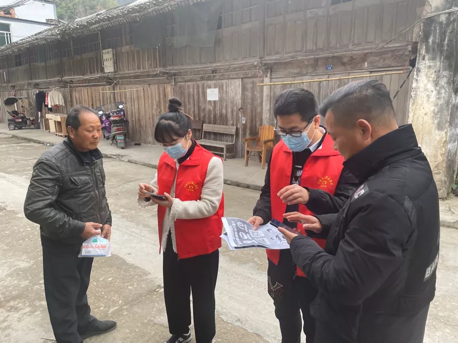 闹村乡团委组织青年志愿者开展疫情防控宣传、排查工作,志愿者们走村入户,全面排查中高风险地区返乡人员,并引导群众申领温州防疫码,织密疫情防控网。