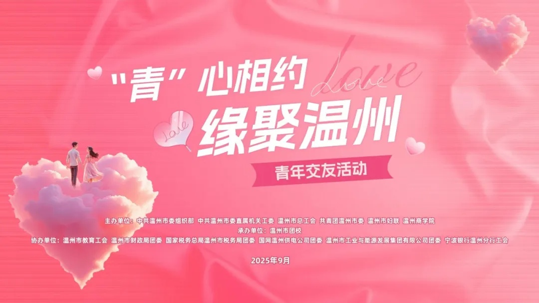2025年9月21日下午,由中共温州市委组织部、中共温州市委直属机关工委、温州市总工会、共青团温州市委、温州市妇联和温州商学院联合主办的“‘青’心相约 缘聚温州”青年交友活动在温州商学院举行。