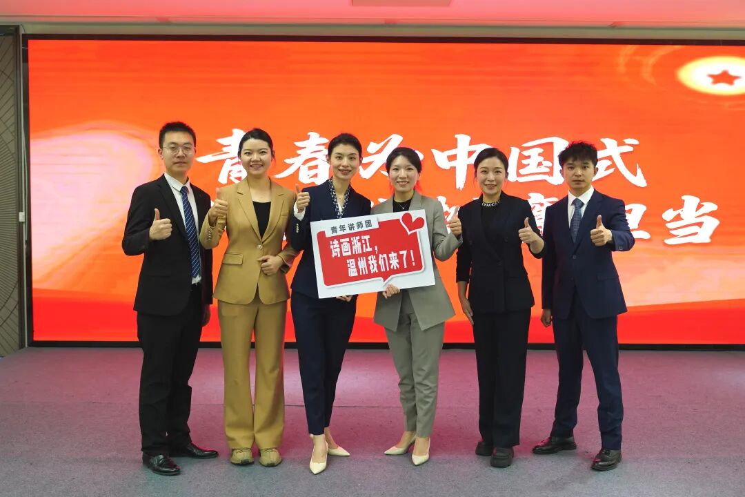 11月21日上午,党的二十届四中全会精神团中央青年讲师团走进温州示范宣讲在温州数动全域电商直播基地举行,该活动由共青团中央宣传部、共青团浙江省委主办,共青团温州市委承办,共青团温州市鹿城区委协办。来自全市的青联委员、青年宣讲员、志愿者及快递员、网约配送员、网络主播、短视频演员、直播电商运营人员等100余位新兴领域青年齐聚一堂,共学全会精神,共话青春担当。