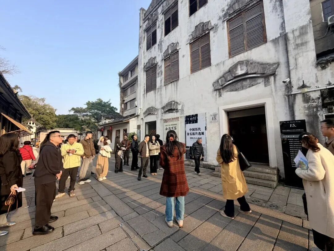 在调研走访环节,青联委员先后走进研究院展厅与墨池坊文化街区,沉浸式感受传统书画艺术与历史街区的独特魅力。姜野宁同志现场导览迎春纳福——朱仙镇木版年画展与中国历代金石拓片选展,从民间艺术与金石文化角度,带领大家感受中华优秀传统文化的深厚底蕴。青年画家陈舒怡带领大家导览衍园美术馆的“莺燕报春——江寒汀、张大壮、陆抑非、唐云书画特展”,深入解读作品内涵与艺术脉络,让大家在专业讲解中体悟传统艺术之美。